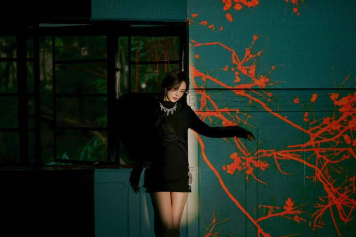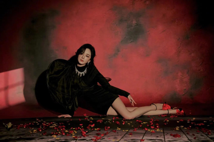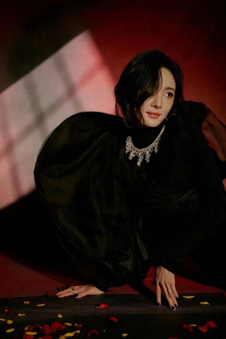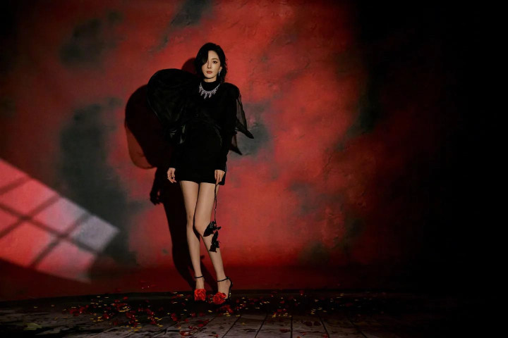 杨幂 最新造型 高跟鞋大长腿vogue盛典 暗夜玫瑰